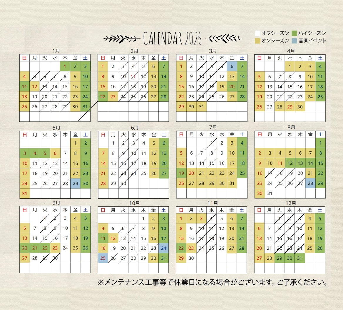 料金はオフシーズン・オンシーズン・ハイシーズンにより異なります。